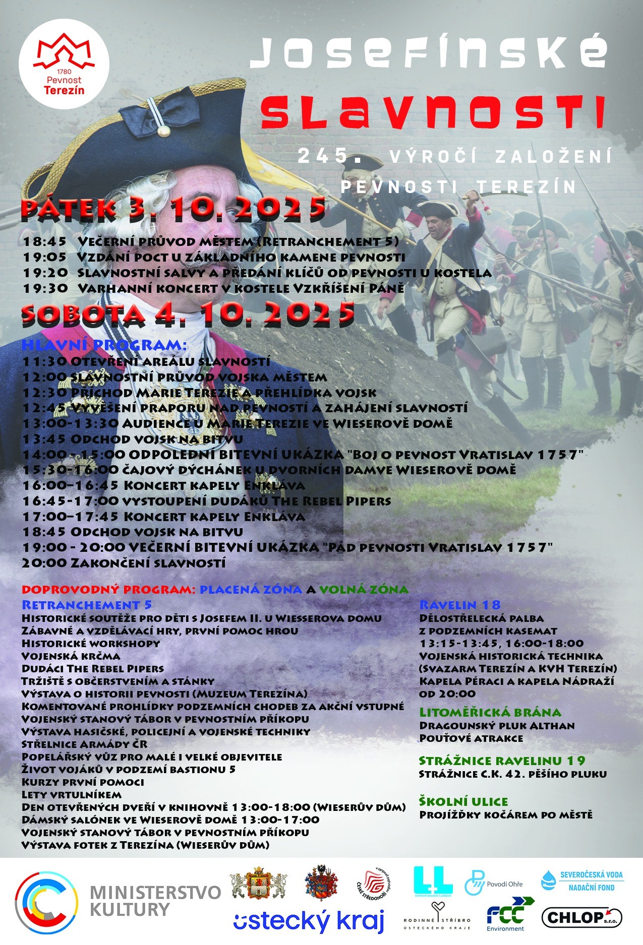 Das Josephinenfest erinnert an die Gründung der Theresienstädter Festung am 10. Oktober 1780. Traditionell spielen sie hauptsächlich im 18. Jahrhundert. Ihr Ziel ist es, an die einzigartige Theresienstädter Festung und die Ereignisse, die ihrem Bau vorausgingen, zu erinnern. Es handelt sich um eine der größten Feierlichkeiten zu dieser Zeit in Europa. Jedes Jahr werden sie von Besuchern aus der Tschechischen Republik, der Slowakei, Deutschland, Polen, Frankreich, Österreich, Russland, Serbien und anderen Ländern besucht.