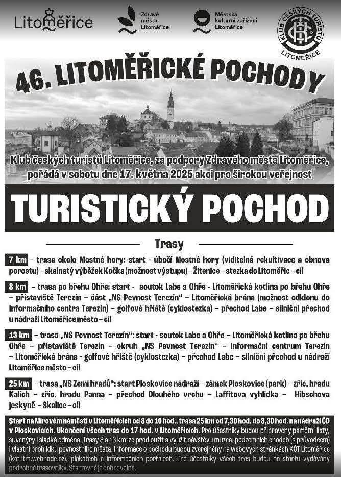 Turistický pochod pro účastníky všech věkových kategorií o různých délkách tras startuje v sobotu 17. května 2025.