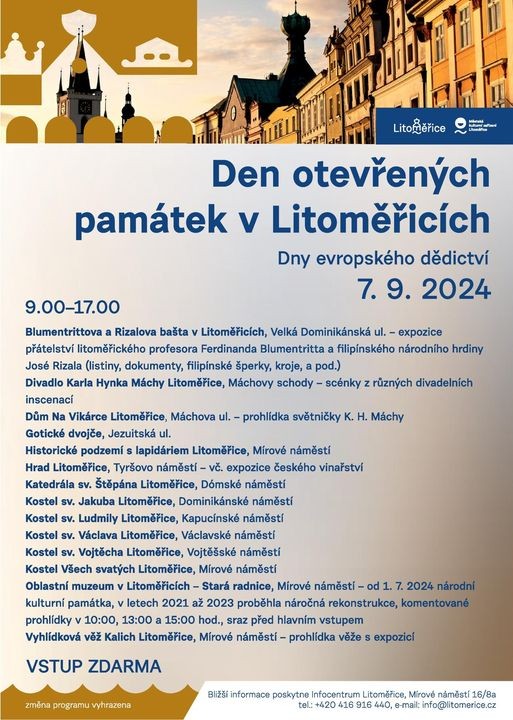 Nenechte si ujít Den otevřených památek v sobotu 7. září 2024. Své dveře otevřou vybrané litoměřické památky zcela zdarma. Více ve fotogalerii.