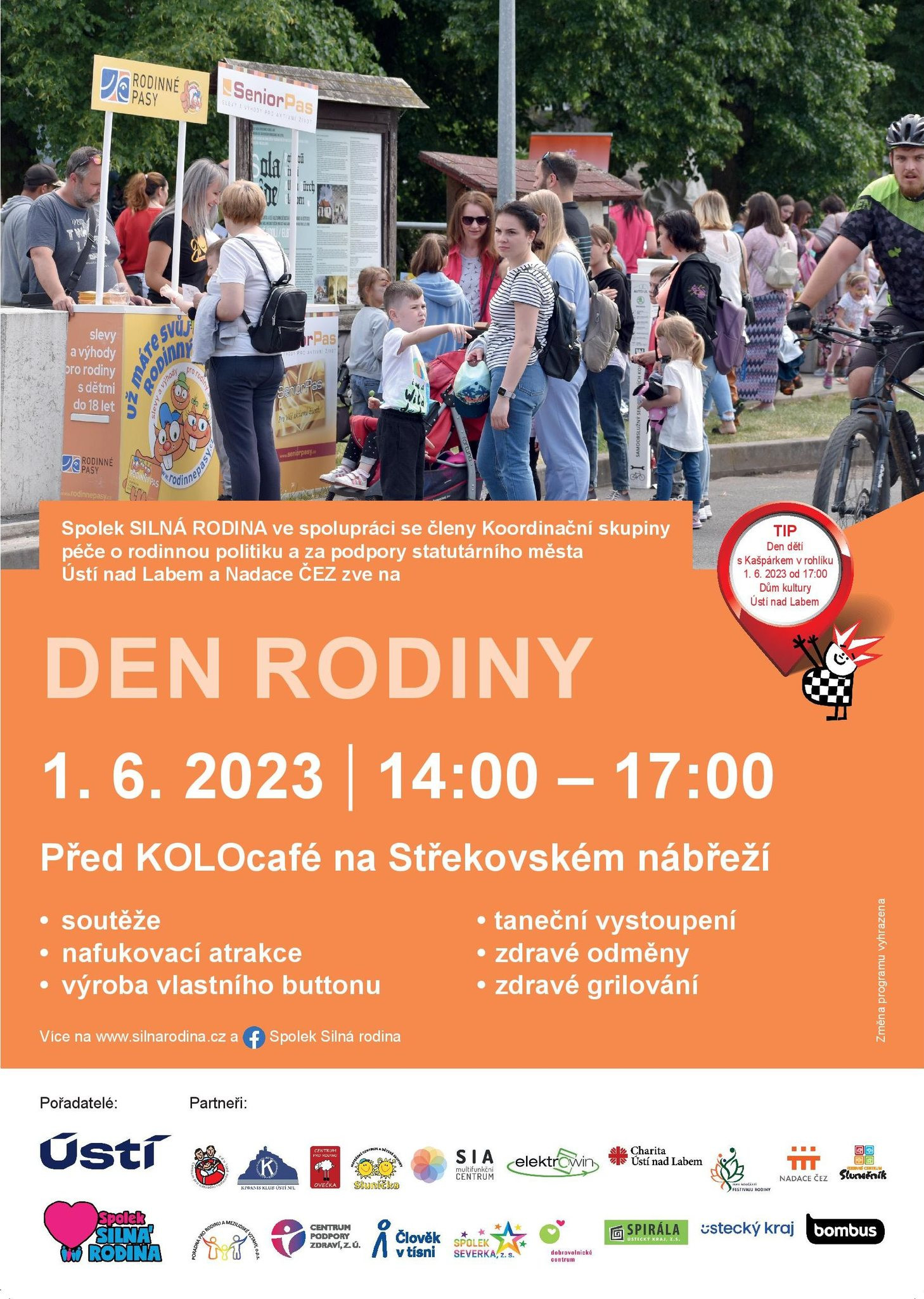 Spolek SILNÁ RODINA ve spolupráci se členy Koordinační skupiny péče o rodinnou politiku a za podpory statutárního města Ústí nad Labem a nadace ČEZ zve na Den rodiny.