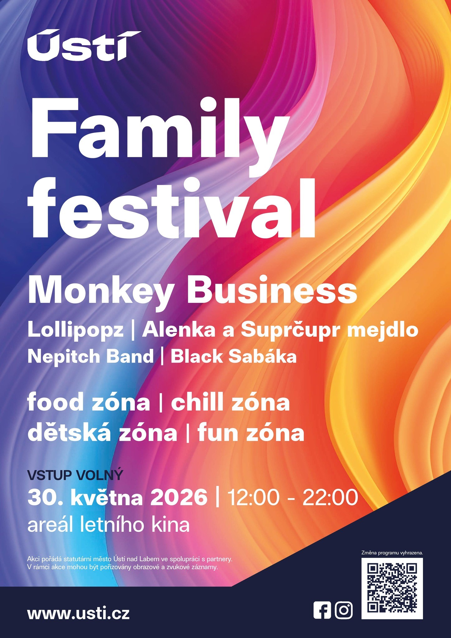Na pódiu se představí Monkey Business, Lollipopz, Alenka a Suprčupr mejdlo, Nepitch Band nebo Black Sabáka. Těšit se můžete také na food zónu s dobrým jídlem, chill zónu pro odpočinek, dětskou zónu plnou aktivit (malování na obličej, nafukovací aktrace, Hot Wheels Pumptrack zóna, spin 360 videokoutek, smyslyplay aktivity), kuchařské workshopy pod vedením známého šéfkuchaře Vladimíra Šmejkala