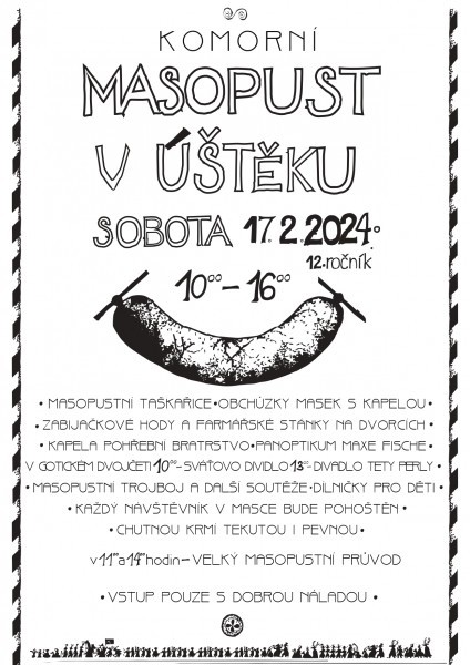 Zabijačkové hody mistrů řezníků Vyhlídka a Hlinky ve dvou dvorech spolu s farmářskými stánky, rozverné masopustní průvody s kapelou v 11 a 14 h po domech a obchůdcích v centru města, loutkové pohádky pro děti v 10 a 13 h v sále Gotického dvojčete, soutěže pro rodiny i děti a další masopustní zábava. V sobotu 17. února od 10 do 16 h.