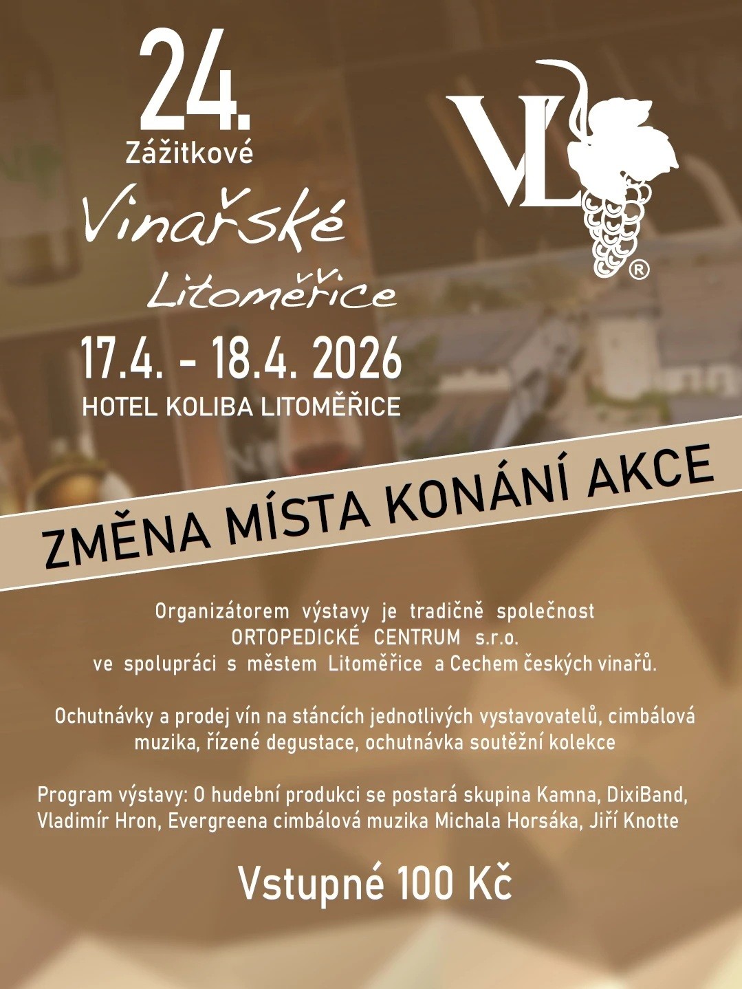 Výstava Vinařské Litoměřice patří k nejprestižnějším výstavám vín v celé ČR. Jde o prodejní výstavu s ochutnávkami vín na stáncích jednotlivých vinařů. V loňském roce se výstavy účastnilo více než čtyřicet vystavovatelů a soutěže vín se zúčastnilo 545 vín z 36 států. Výstava se koná v pátek 17.4. od 13.00 do 23.00 hod. a v sobotu 18.4. od 10.00 do 19.00 hod v hotelu Koliba. Je připraven i doprovodný program "Víno a pokrmy", a po celé dva dny vás bude provázet cimbálová muzika Slovácko s Jožkou Šmukařem.